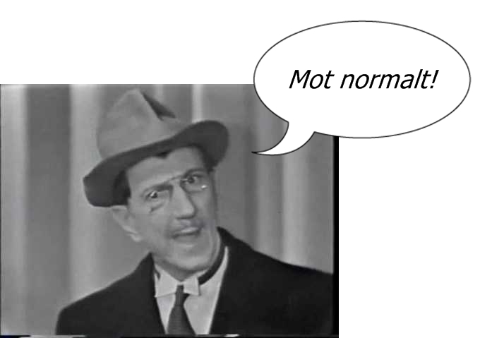 Legen: «helt stille, med haka hengende nede på brystkassa og øyenbrynene oppe ved hårfestet»